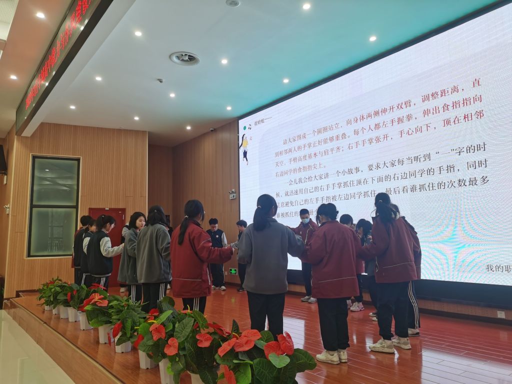 活动刚开始,志愿者黄婧玥带领同学们开展了“捉蜻蜓”破冰游戏,活跃了气氛,吸引了同学们的注意力。之后志愿者引导参与活动的高中生们做好自己的生涯规划,同学们积极参与,踊跃发言,热情讲述分享着自己的梦想,有的同学想要成为优秀的主持人,有的想成为救死扶伤的医生。在大学介绍环节,志愿者向学生们详细介绍了我校各个专业,重点介绍了应用心理学专业,吸引了学生们的兴趣。