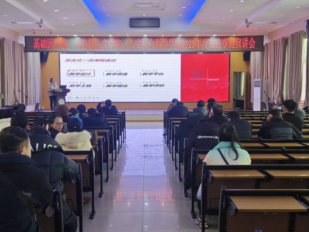 本网讯(通讯员 肖飞 李洋洋)12月18日下午,马克思主义学院、人文社会科学学院联合基础医学院在1号楼6楼会议室开展2023年先进事迹宣讲会。两个学院无课教职工参加本次宣讲,宣讲会由基础医学院分党委书记张秋芳主持。
