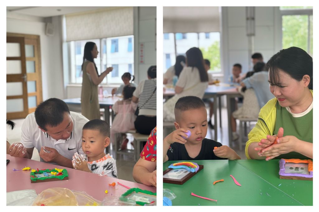黏土相框活动参与家庭充分发挥各自的创意,通过搓、揉、拍、捏等动作将彩色黏土刻画成各种形状再放入相框的框架中,打造出一块充满个性的相框。