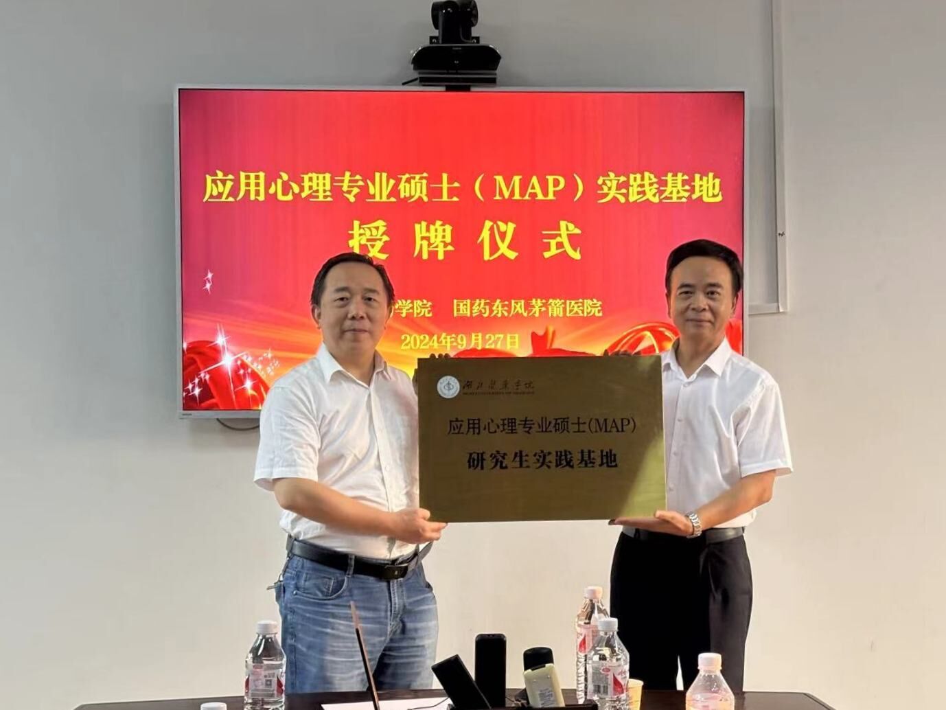 本网讯(通讯员 柴晓运)9月25日下午,马克思主义学院院长陈全新、应用心理学系主任柴晓运、专任教师张光明和范敏博士一行赴我院专业实习基地十堰市中医医院(十堰市精神卫生中心)和国药东风茅箭医院(十堰市精神病医院)进行授牌、颁发行业导师聘书并督导实习工作。