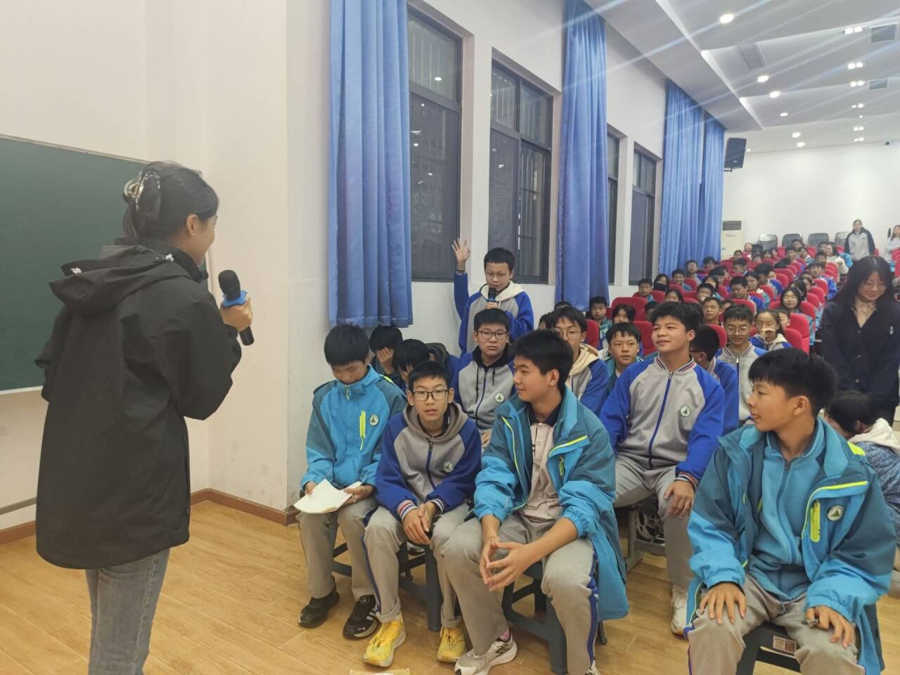 本网讯(通讯员 周荣荣)11月8日,湖北医药学院心灵导航志愿服务队9名应用心理学专业志愿者在东风四中阶梯教室,为全体初二年级学生开展“目标与自我实现”主题心理辅导课,吸引了大量学生参与。