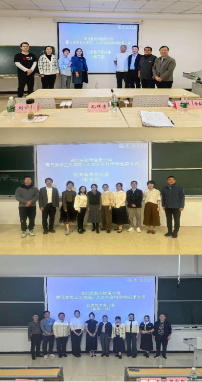 本网讯(通讯员 陈玫霖)为推进落实本科教育教学评估工作扎实落地,强化教师教学技能,促进教师专业化发展,给教师们提供相互切磋、相互学习、相互交流的平台,10月12日下午,马克思主义学院、人文社会科学学院在公卫大楼1号、2号、3号教室举办了第十届优秀教学奖比赛。比赛分为园丁组和新秀组共3个赛场同时进行,分别由党委书记孔祥清、院长陈全新、副院长朱红军主持,学院全体无课教师参加了观摩。