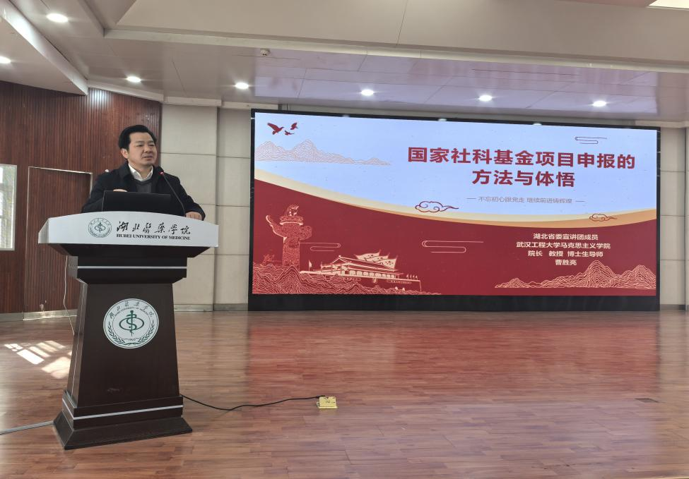 本网讯(通讯员 陈玫霖)为了进一步提升我校教师对国家社科基金项目的申报水平,12月13日下午,学院邀请武汉工程大学马克思主义学院院长曹胜亮教授在八号楼五楼思政VR中心开展了题为“国家社科基金项目申报的方法与体悟”的讲座。讲座由马克思主义学院院长陈全新主持,全校百余教师参加。