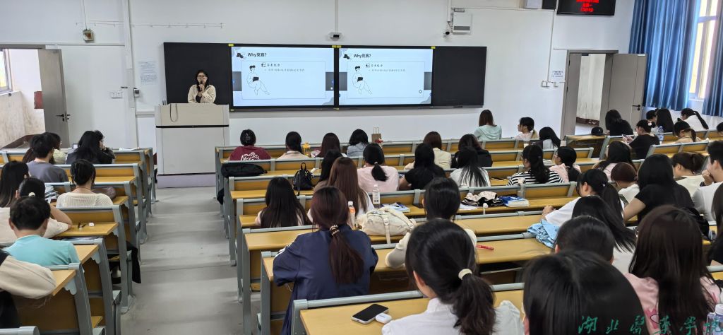 谭圆圆给学生们重点讲解了大学生创新创业训练项目、中国国际大学生创新大赛、心理学专业本科创新论坛等几类项目申报的注意事项。她结合实际案例,详细讲解了大创项目的选题技巧、好的选题应立足社会需求,从心理学独特视角另辟蹊径。针对中国国际大学生创新大赛,应着重强调创新与应用的结合,参赛项目不仅要有创新性的心理学理念,还需突出项目亮点和竞争力。谈及创新论坛赛事,她表示,要精准把握论坛主题,准备过程中,要广泛查阅前沿文献,了解学科最新动态,确保研究成果具有前沿性和独特性。针对心理学科竞赛注重实践应用的特点,她分享了大量经典的实验设计案例,还通过互动提问的方式,引导同学们思考如何优化实验方案,提高实验的科学性和有效性。
