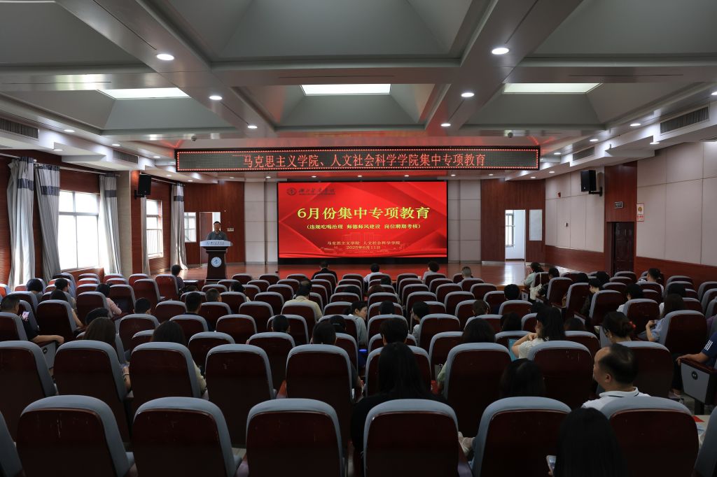 本网讯(通讯员 鲍晓宇)6月11日上午,马克思主义学院、人文社会科学学院在8号楼5楼报告厅开展集中专项教育,两院全体教职工参会。会议由马克思主义学院、人文社会科学学院党委书记孔祥清主持。