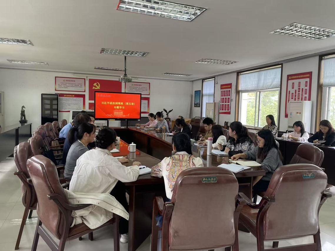 本网讯(通讯员 王刚)9月24日下午,马克思主义学院全体思政课教师在学院四楼会议室专题学习《习近平谈治国理政》第五卷,全体思政课教师参加,学习活动由马克思主义学院副院长孙磊主持。