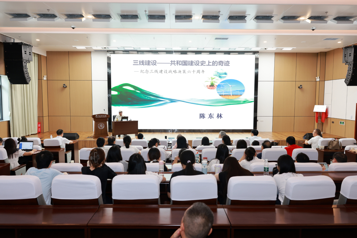 揭牌仪式结束后,举行了两场精彩的学术报告。陈东林副会长讲授题目为《三线建设——共和国建设史上的奇迹》,结合三线建设研究任务,陈会长对湖北医药学院提出三方面建议:研究三线建设给农村山区带来的变化、给中西部地区医药工业带来的变化、为中西部医疗卫生教育做出的贡献,这为我们今后的研究提供了依据、指引了方向。郑有贵副会长讲授题目为《三维效应:国史主题视域下三线建设历史地位探析》,他从三线建设在国史主题中的直接效应、溢出效应、后续效应等三个维度,探讨和评价三线建设在新中国史中的地位。在场师生听得入神,掌声阵阵,对三线建设有了深入了解,对研究中心发展充满信心。