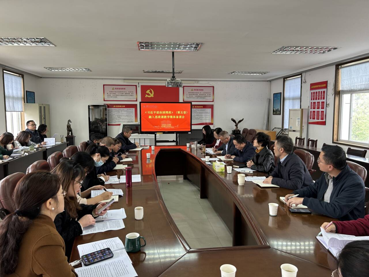 备课会上,《习近平新时代中国特色社会主义思想概论》教研室姚小飞教授从为什么学、学什么、如何贯彻学习、宣传、研究阐释三方面对《习近平谈治国理政》(第五卷)进行了导学,思政课五门主干课程负责人曾璐、高志婕、谢美娟、张丹、王刚分别结合各自课程实际就如何融入思政课汇报了相关工作设想。随后,孔祥清、隆娟、尉迟光斌等与会教师也就此问题进行了发言。马克思主义学院院长陈全新就学院如何做好《习近平谈治国理政》(第五卷)理论学习、宣传宣讲、教育教学、研究阐释等工作做了安排,尤其是对如何学习借鉴往年国社科、教育部思政专项中标课题进行了心得体会交流。