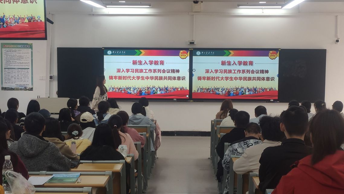 本网讯(通讯员 杨蓉蓉 姚梦祺)为增强新生对民族宗教政策的认识和理解,铸牢中华民族共同体意识,10月26日晚,马克思主义学院在4301教室组织开展了新生民族宗教政策入学教育活动,辅导员韩丽萍和2025级全体新生参加。