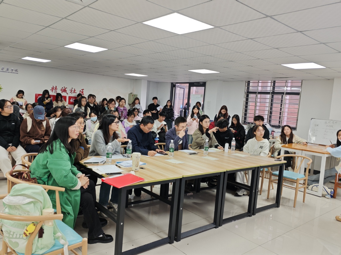 本网讯(通讯员 江杉杉)为推动心理学专业与创新创业深度融合,引导学子将心理学科知识转化为服务社会的实践力量,11月3日下午,马克思主义学院2025年“创青春”大学生创业计划赛在精诚社区举行,学院党委副书记黄平、校团委郭俊、尹颂然、马院姚小飞、韩丽萍、谭圆圆等多位老师组成评委团,从项目创新性、可行性、社会价值等核心维度对答辩的8支团队进行评审。