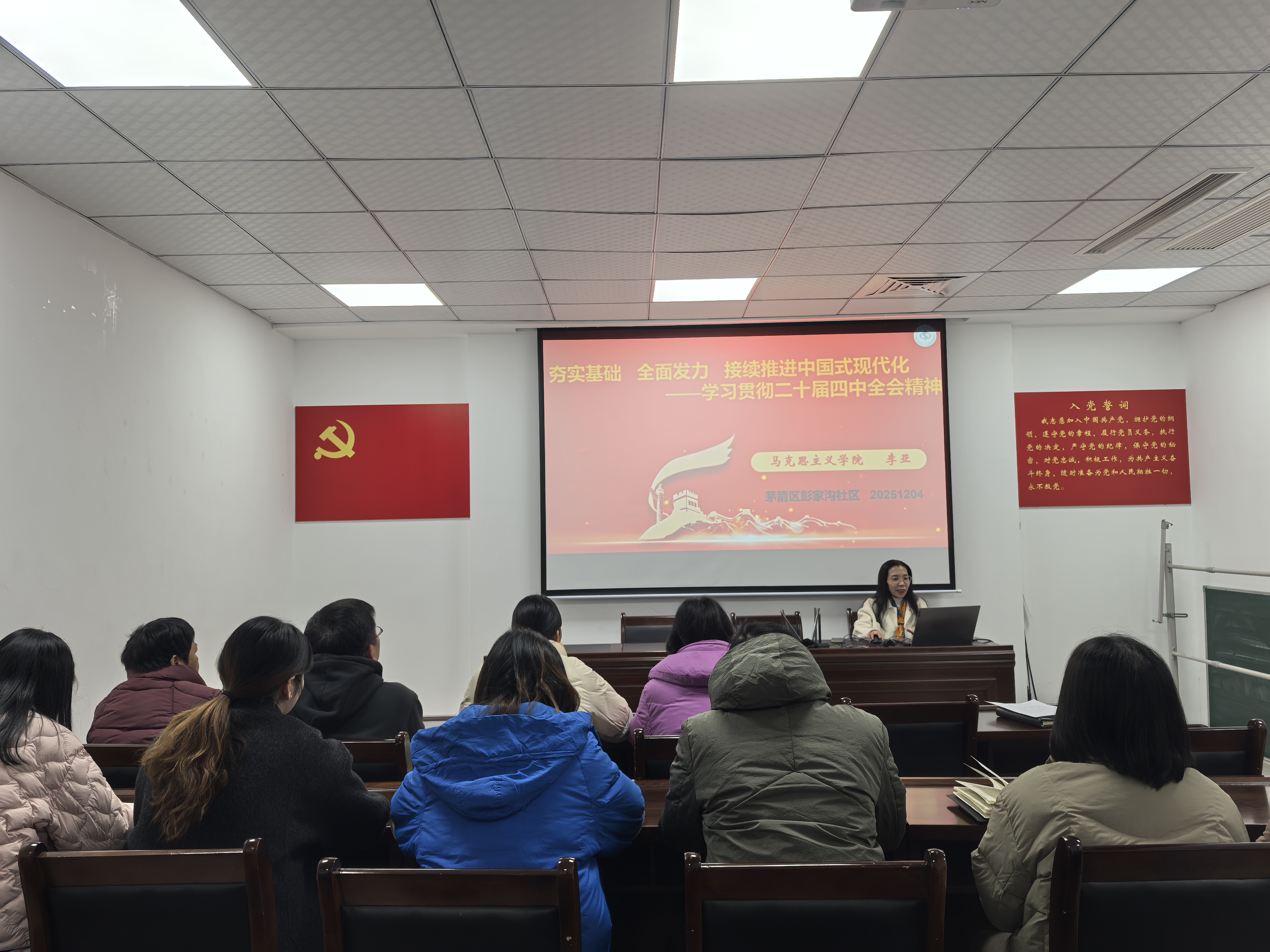 本网讯(通讯员 何宝华)2025年12月4日,中共湖北省委讲师团“百马行动”宣讲团成员、湖北医药学院马克思主义学院教师李亚赴十堰市茅箭区彭家沟社区开展党的二十届四中全会精神宣讲,作题为《夯实基础 全面发力 接续推进中国式现代化》的专题宣讲报告,社区干部及群众等20余人参与。