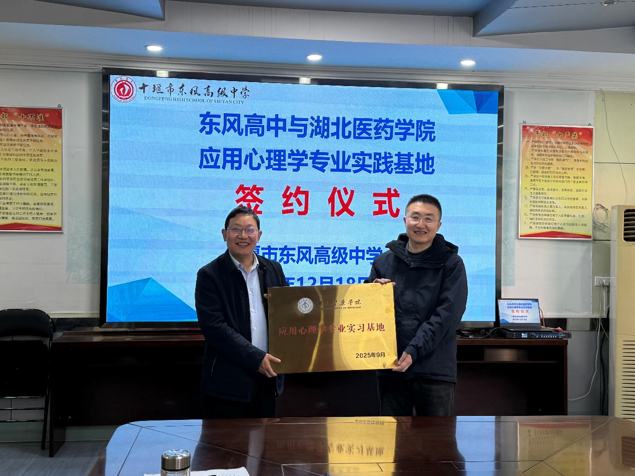 本网讯(通讯员 翟成蹊)2025年12月18日下午,马克思主义学院应用心理学系与十堰市东风高级中学在东风高中第一会议室举行应用心理学专业本科和硕士实习基地合作协议签约仪式。此次签约是应用心理学系深化实践育人体系建设、推进心理学专业人才培养与基础教育需求有效衔接的重要举措。