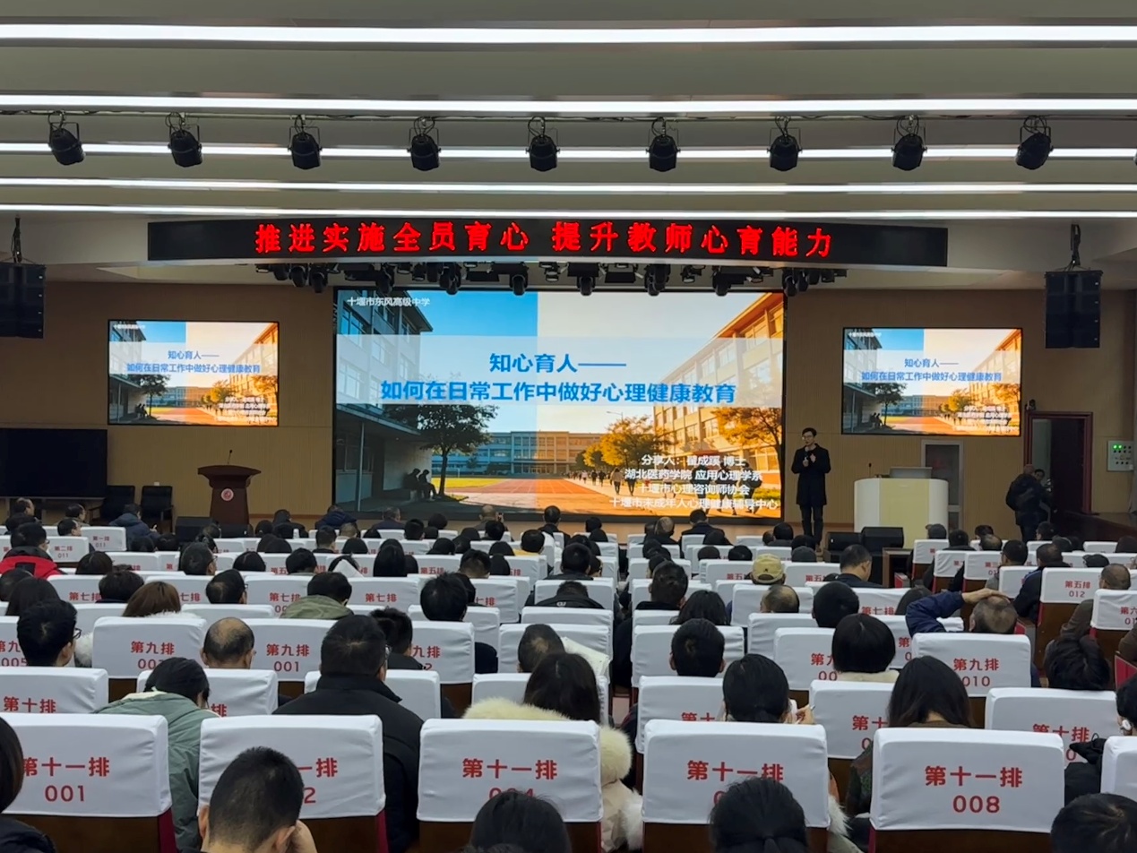 签约仪式结束后,翟成蹊博士应邀为东风高中全体教师作心理专题讲座。讲座以“心理健康教育融入日常教学”为主题,结合中学教育实际和真实教学案例,从学科教学视角系统阐述了高中生心理发展特点、教师在课堂教学与班级管理中可发挥的心理支持作用,以及心理问题识别与转介的基本原则,受到与会教师的广泛认可。
