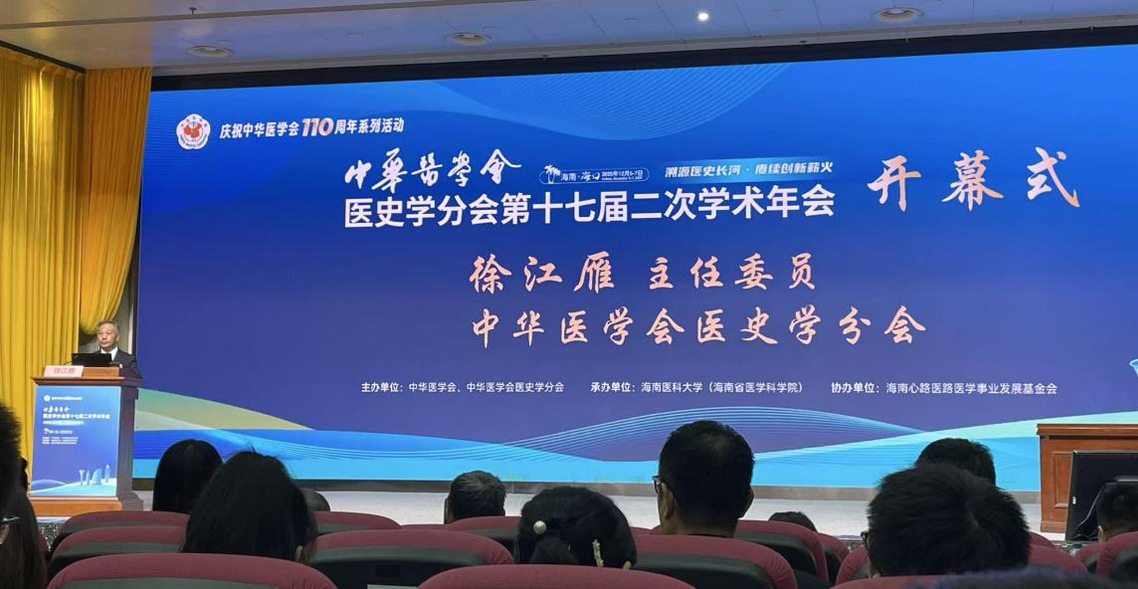 本网讯(通讯员 彭惜芹)2025年12月5日—7日,由中华医学会医史学分会主办,海南医科大学承办的中华医学会医史学分会第十七届二次学术年会在海南医科大学举行。本次会议以“溯源医史长河,赓续创新薪火”为主题,来自北京大学、中国中医科学院、河南中医药大学、南京中医药大学等多所高等院校、临床医疗机构的专家学者参会。