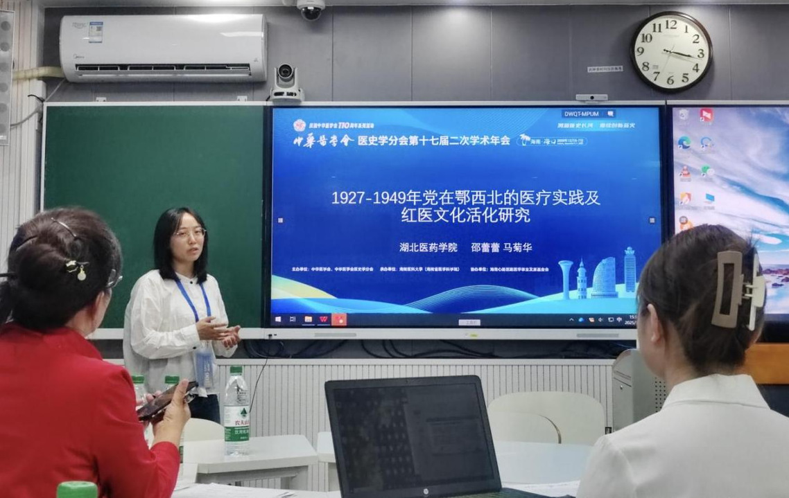我院邵蕾蕾老师参会并作第四分会场发言。邵老师围绕《1927-1949年党在鄂西北的医疗实践及红医文化活化研究》主题,首先说明了本主题的选题缘起、研究思路与方法,随后从1927-1949年党在鄂西北的医疗实践、鄂西北红医文化利用的现状与不足、传承活化红医文化的建议三个方面进行汇报。报告得到了与会专家的点评指导。
