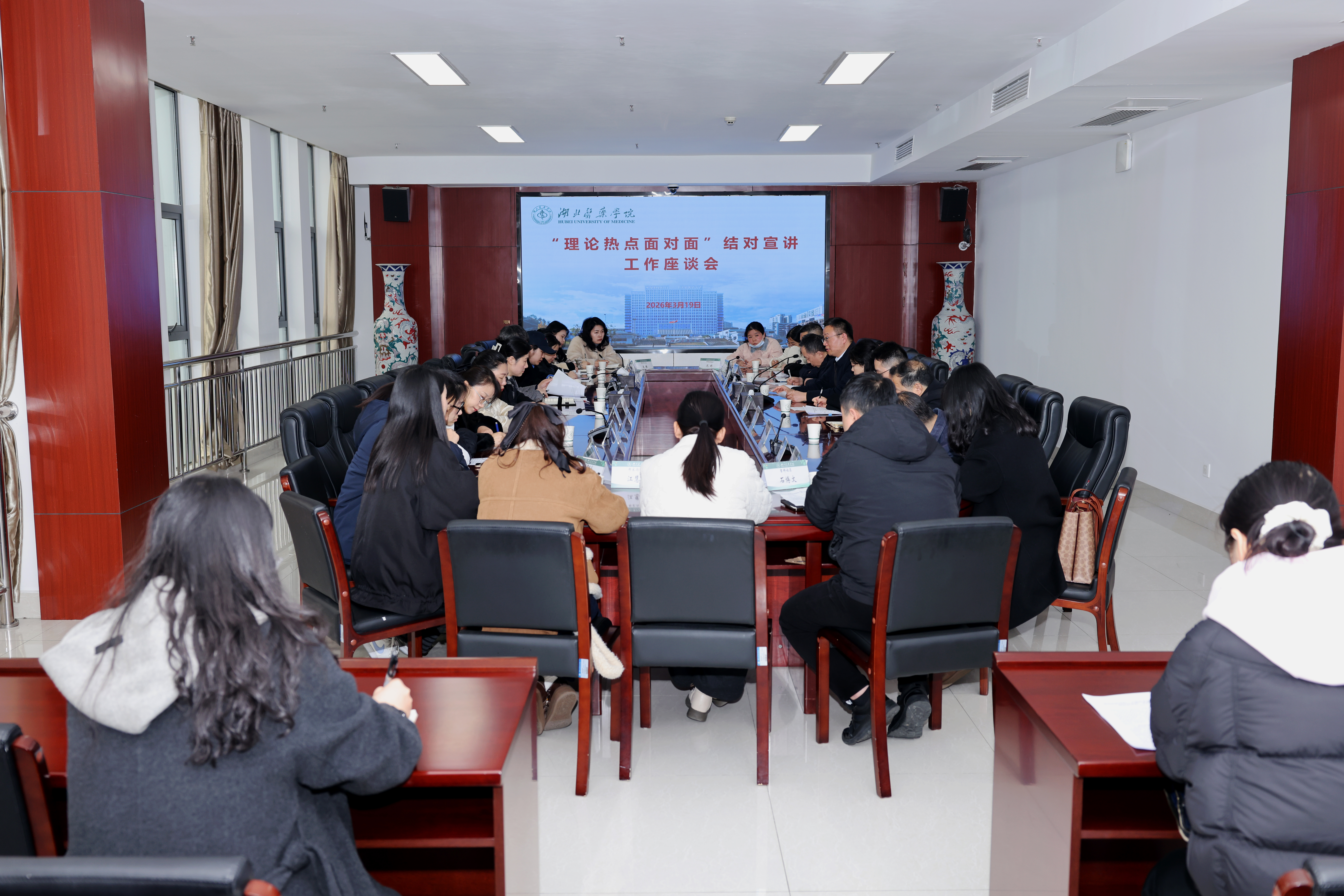 本网讯(通讯员 何宝华)为进一步提升“理论热点面对面”宣讲结对工作实效,扎实推进理论宣讲实践基地建设,推动理论宣讲走深走实、贴近群众,2026年3月19日下午,“理论热点面对面”结对宣讲工作座谈会在湖北医药学院科教楼1708会议室顺利召开。湖北省委讲师团、湖北医药学院、茅箭区委宣传部、二堰街道及各村(社区)相关负责人与工作人员齐聚一堂,共商理论宣讲工作发展良策。