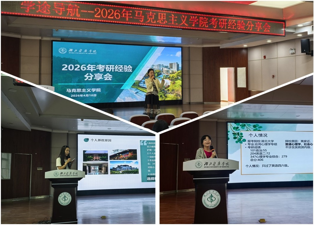 本网讯(通讯员 江杉杉)为帮助我院学子明晰考研路径、破解备考难题,坚定考研信心,掌握科学高效的备考方法,4月16日下午,马克思主义学院在八号楼5楼多功能厅举办2026年考研经验分享会。学院党委副书记黄平、辅导员韩丽萍,以及各年级有考研意向的本科生参加了本次分享会。